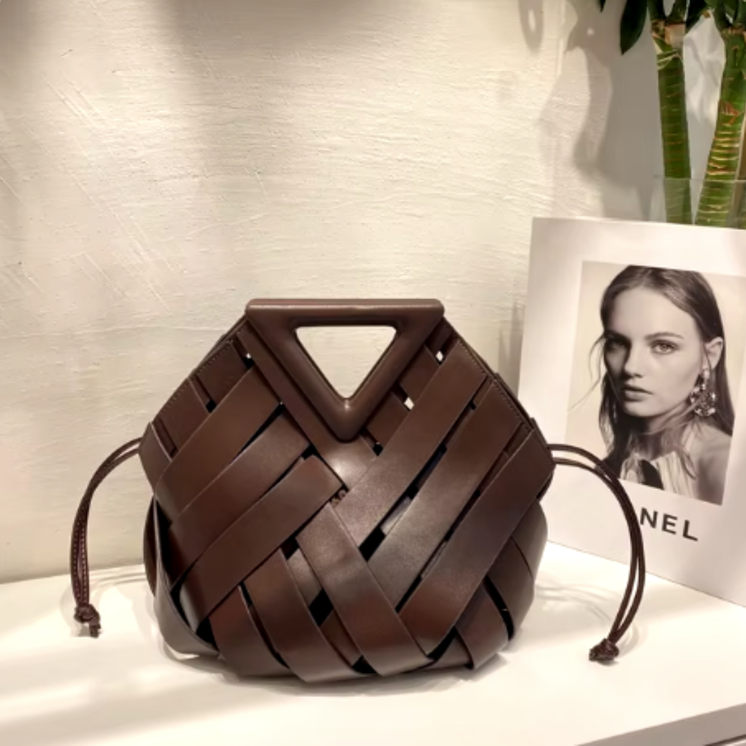 Make a lasting impression with the Natalia Handbag, an accessory as unique as you are. The inverted triangle handle adds a modern touch, making this woven bag a true symbol of contemporary elegance. Crafted with exceptional artistry, each thread tells a story of fashion and function, making it the perfect blend of style and practicality. Available in dark brown, black, brown, and green, the Natalia Handbag is a must-have for any fashion-forward wardrobe.